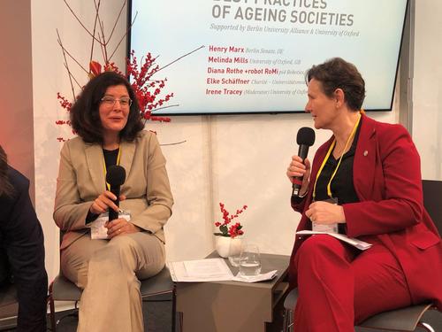 Falling Walls Panel mit Diana Rothe von PI4 Robotics (links) und Irene Tracey von der University of Oxford (rechts)