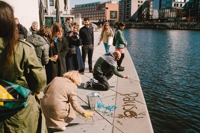 [image 1 ©Alexander Rentsch: The Spree Credos Walk by Cleo Wächter asked: Which (his)stories are embedded in our Waters? and Viceversa - how is water embedded in us and the beliefs that we hold?]