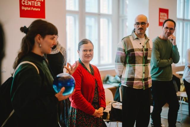 [image 5 ©Alexander Rentsch: Dr. Marlene Bart offered the perspective of artistic research and cultural events where art, science, and society encounter the issues of water use and AI together. This table was hosted by Sina Ribak, Co-Curator of this On Water Parcours event.]