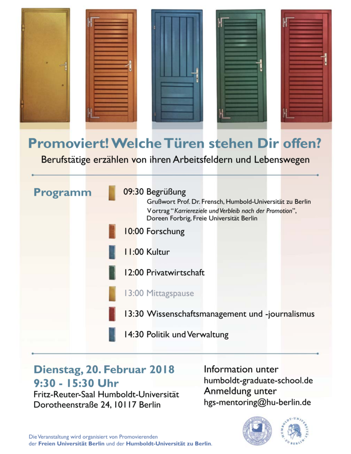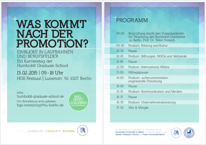 The core event “Career Day” is organized by Humboldt Graduate School (Humboldt-Universität zu Berlin).